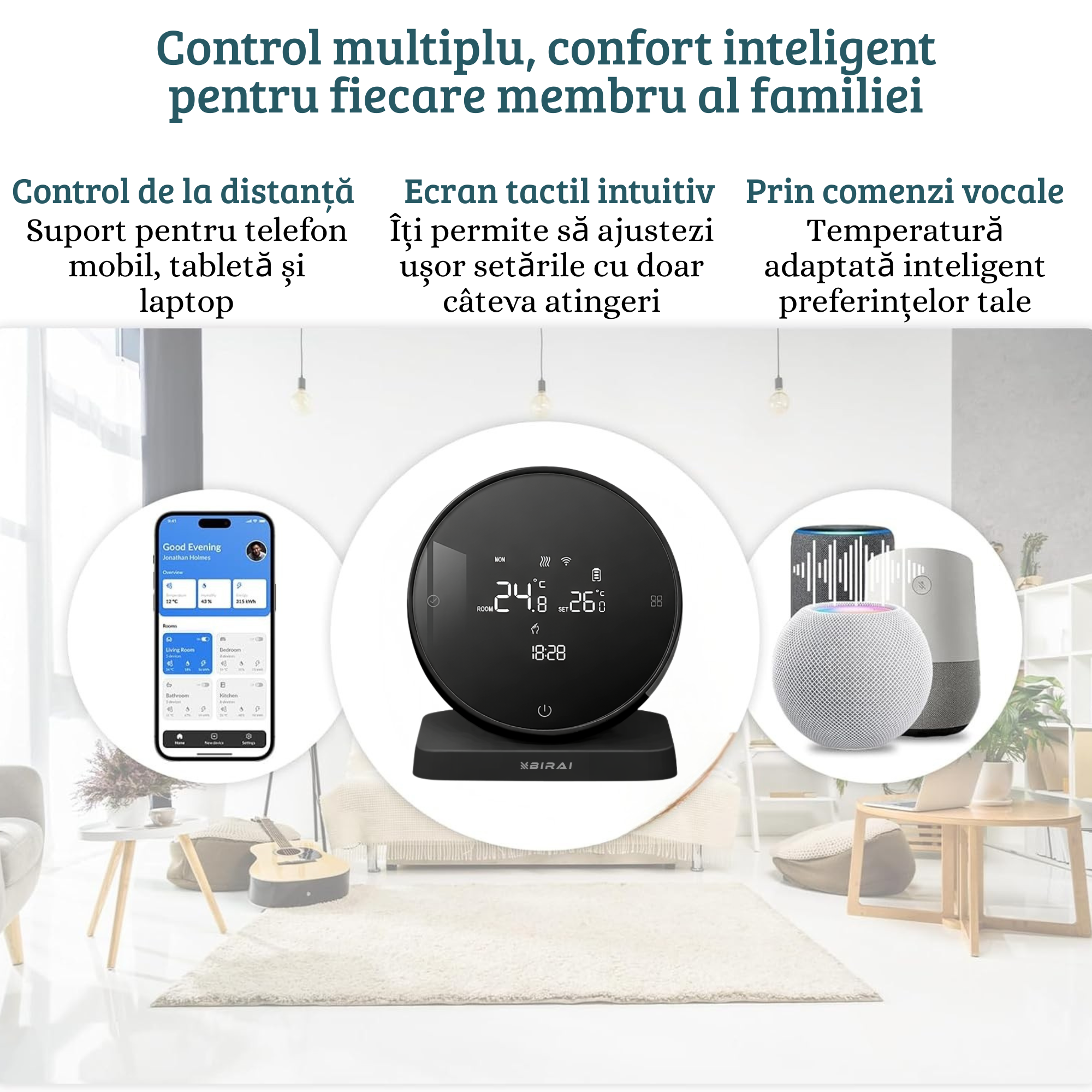 Controleaza temperatura din casa prin comenzi vocale simple si bucura-te de un climat perfect, fara intreruperi.