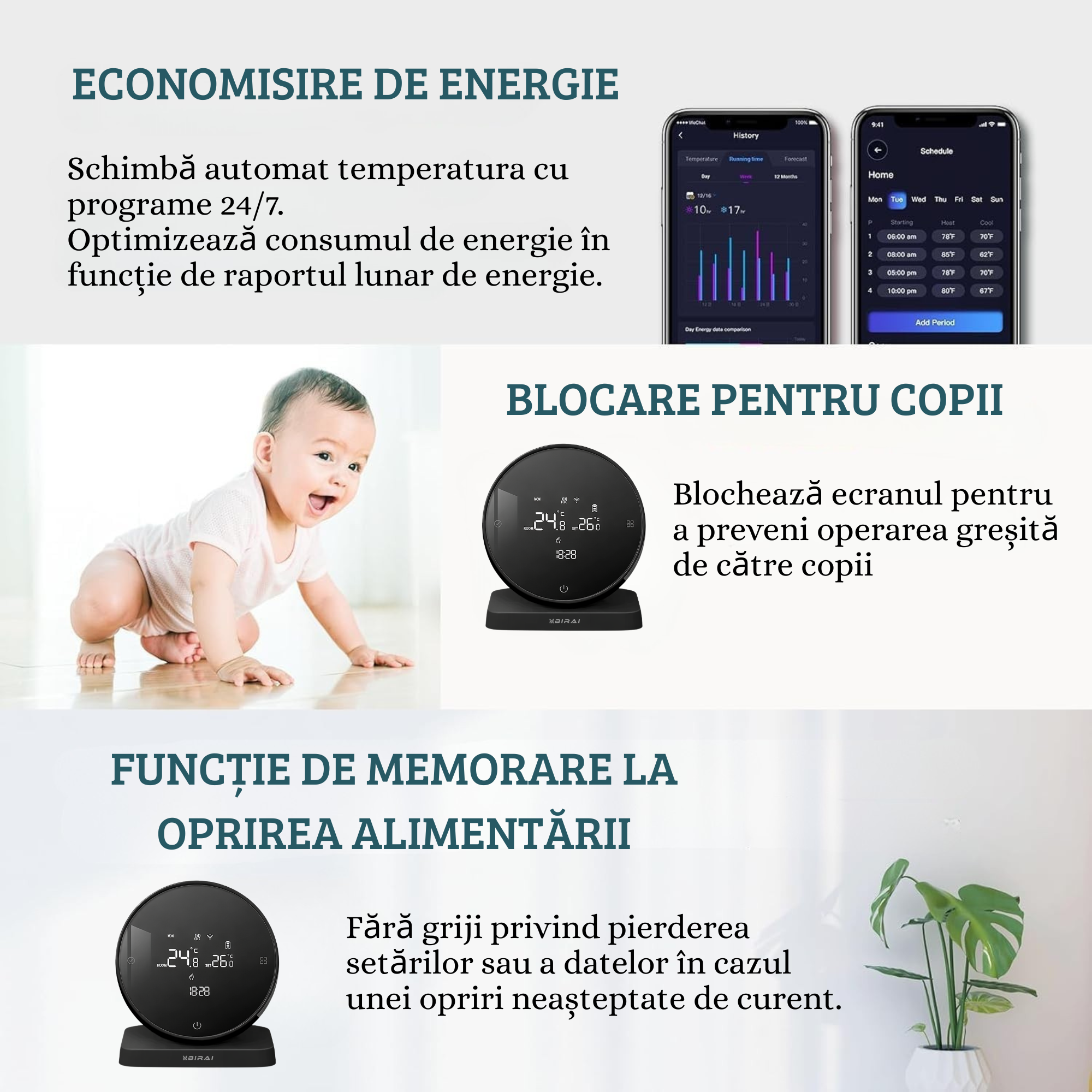 Blocheaza comenzile termostatului pentru a evita ajustarile neintentionate. Tu te bucuri de liniste, iar copilul tau se joaca liber, fara riscuri.