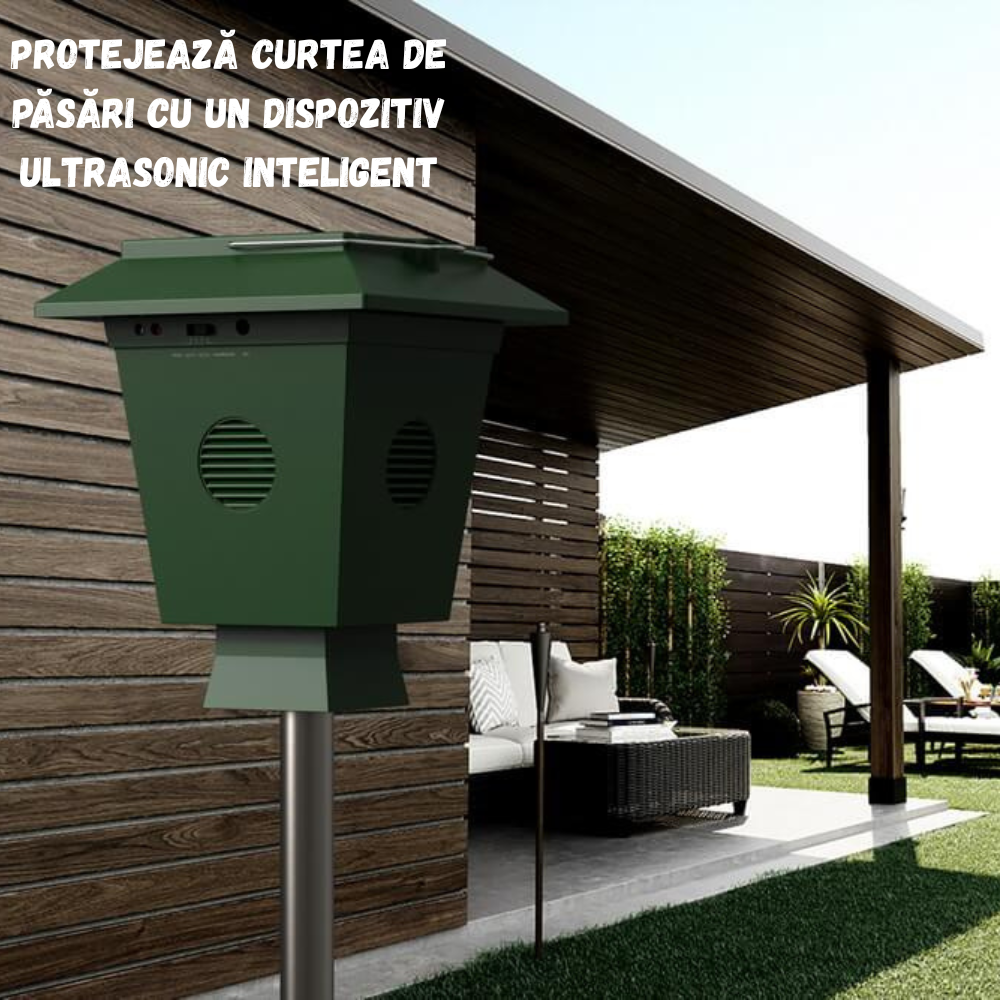 Scapă de păsările nedorite cu ajutorul dispozitivului anti-păsări solar BIRAI®, soluția modernă și ecologică pentru protejarea spațiilor exterioare. Acest dispozitiv ultrasonic cu 4 difuzoare de mare putere emite unde sonore care alungă eficient porumbeii, ciorile, graurii și alte specii de păsări fără a le face rău.