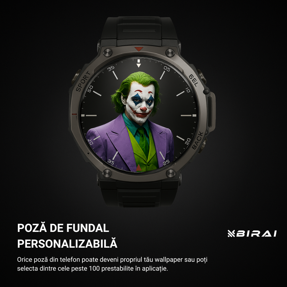 Descoperă un ceas inteligent modern, rezistent la apă 5ATM, cu ecran AMOLED vibrant, GPS de înaltă precizie și autonomie extinsă. Ideal pentru sport, fitness și activități outdoor, suportă apeluri Bluetooth, notificări în limba română și peste 170 de moduri sport. Compatibil Android și iOS, cu curea din silicon confortabilă, GloryFitPro BIRAI® este alegerea perfectă pentru performanță și stil.