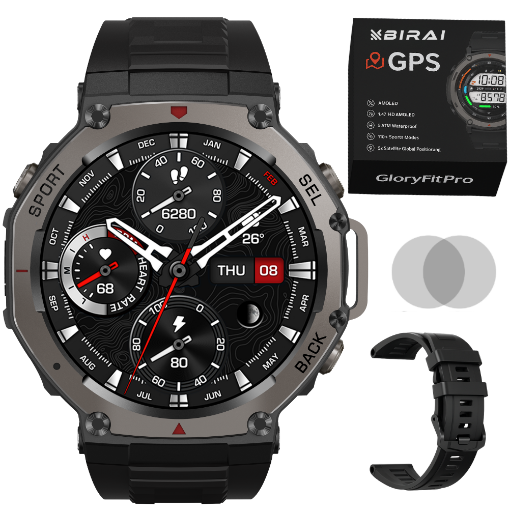 Smartwatch sport pentru bărbați GloryFitPro BIRAI®, ecran AMOLED 1.43”, GPS precis, 170+ moduri sport, monitorizare ritm cardiac și rezistență la apă 5ATM