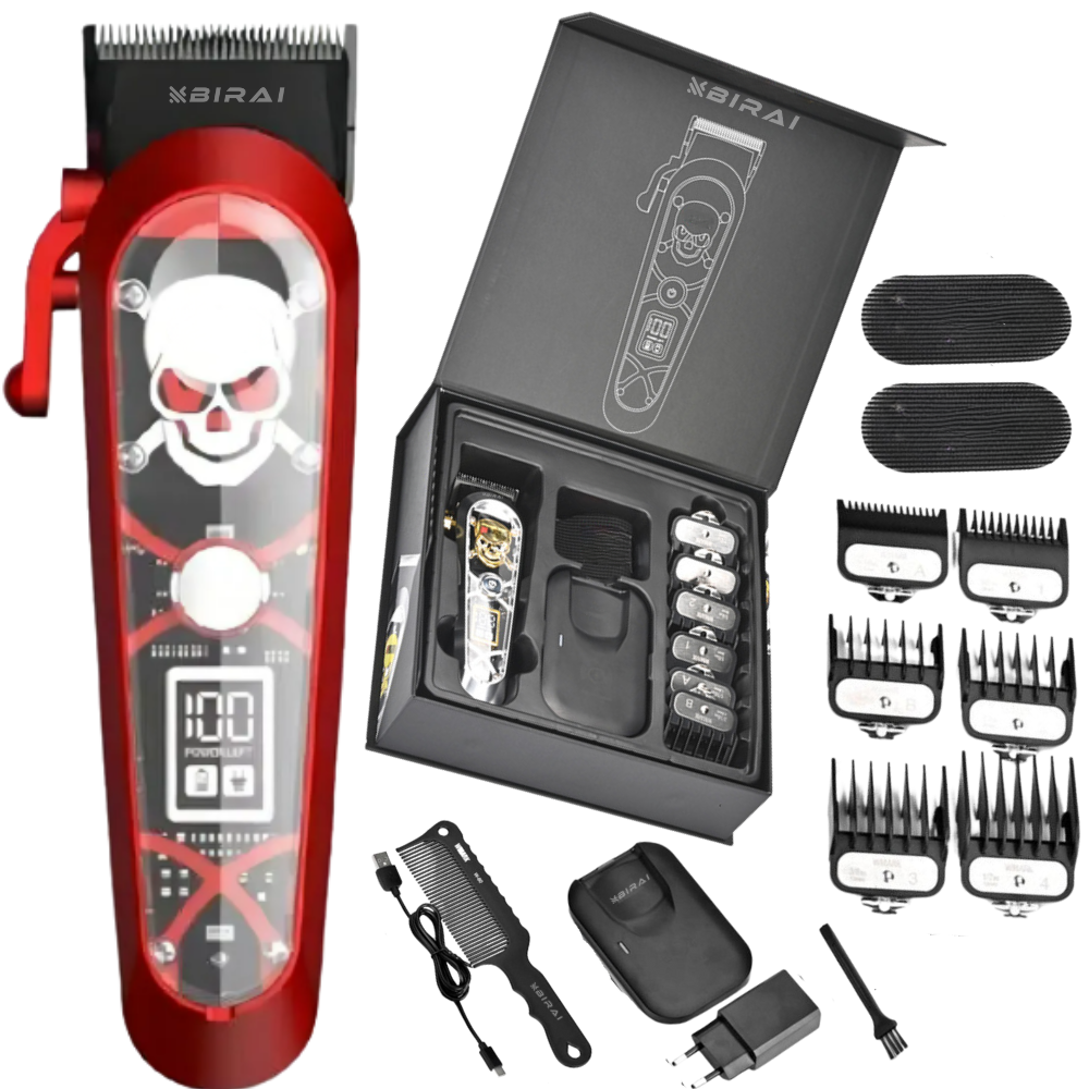 Masina De Tuns Profesionala BIRAI Elite, 7000 RPM, Acumulator, Afisaj LED, Lame Titan, Waterproof, Rosu